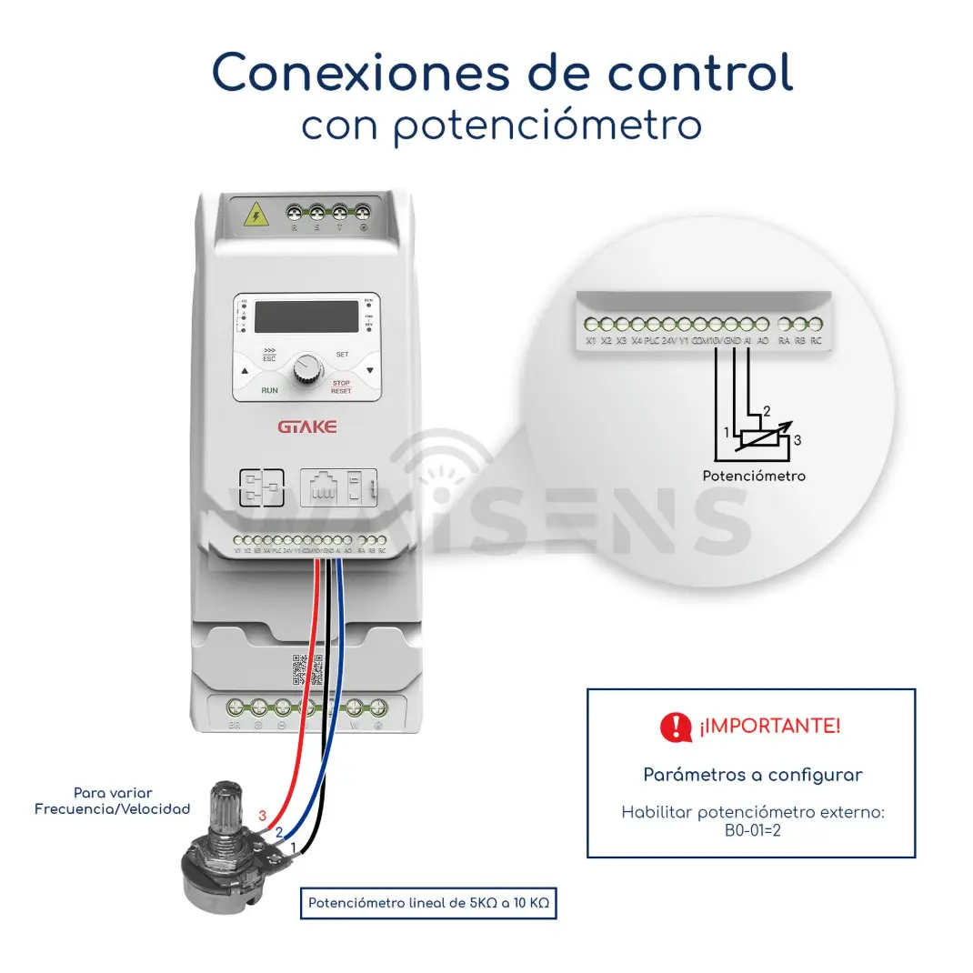 En Waisens desarrollamos material exclusivo para que configures e instales tu variador GK610 con un potenciómetro externo sin complicaciones.