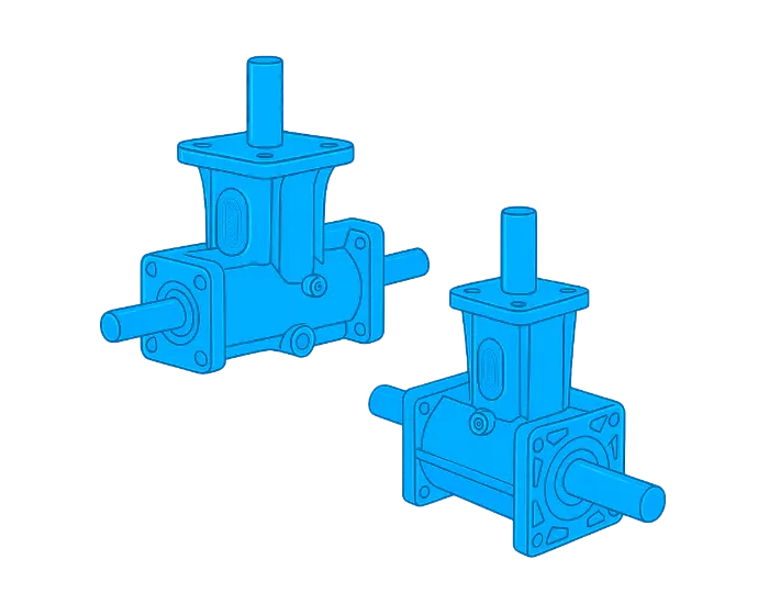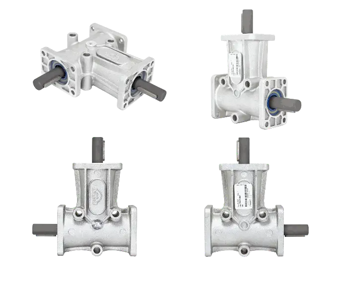 Nuestro Reenvío Angular Serie RL de Tramec es una caja de engranajes cónicos diseñada para transmitir potencia entre ejes perpendiculares con alta precisión.