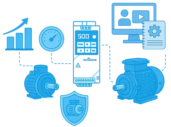 - Aceleración y frenado suaves que protegen tus motores y prolongan su vida útil.